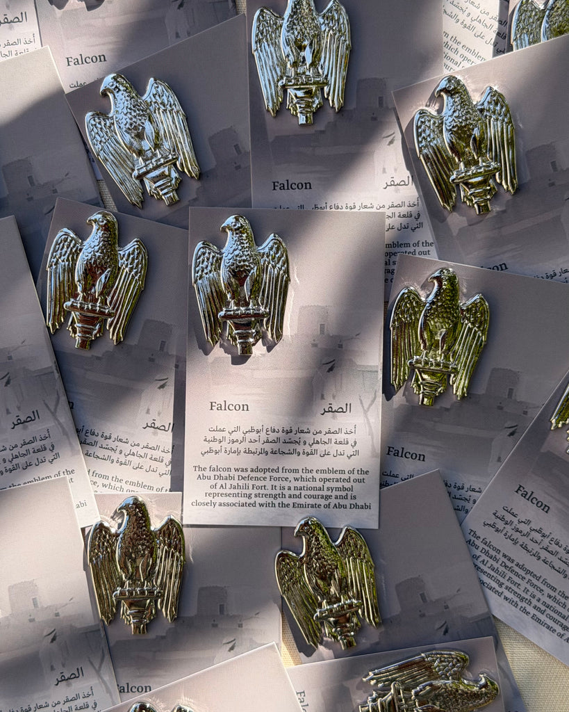 أُخذ الصقر من شعار قوة دفاع أبوظبي التي عملت في قلعة الجاهلي و يُجسّد الصقر أحد الرموز الوطنية التي تدل على القوة والشجاعة والمرتبطة بإمارة أبوظبي